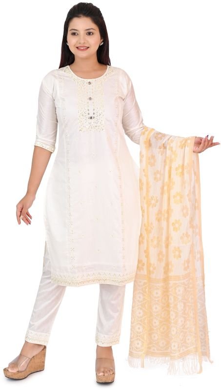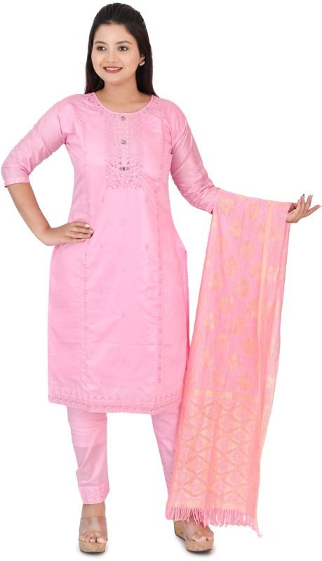 Women's Embroidered Cotton Kurta Set with Dupatta