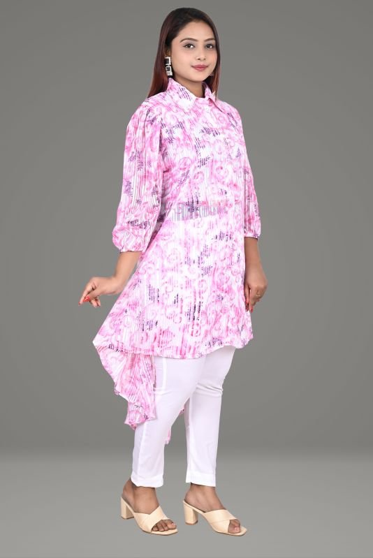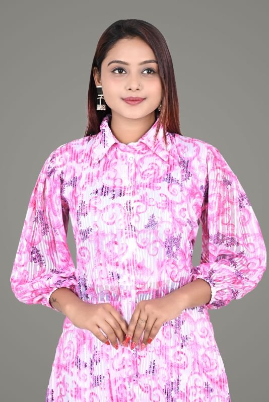 Womens Pink Floral Printed Ethnic Wear Kurta Pant Set
