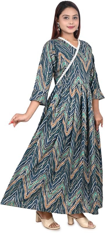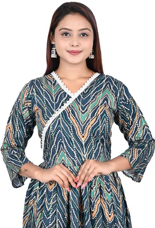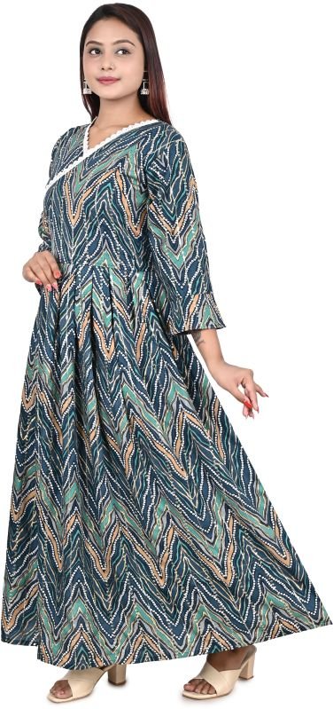 woman designer printed cotton anarkali heavy gown