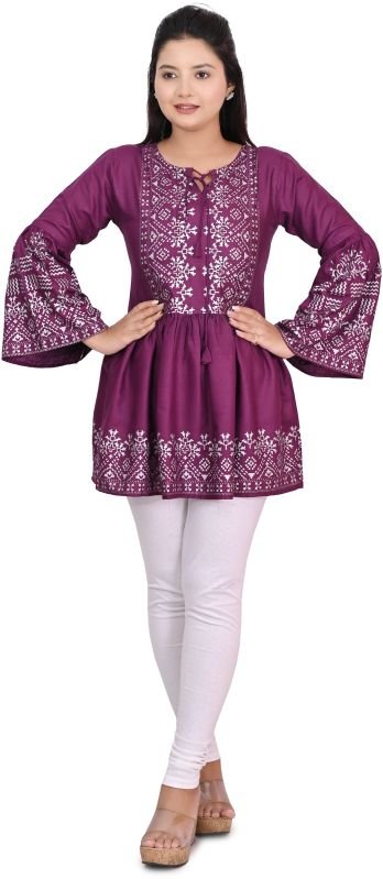 Leading Manufacturers and Wholesaler of Casual Cotton Embroidered Women Tops, Women Cotton Bell Sleeves Printed Tunics, Women Flare Regular Fit Casual Stylish Top, Womens Casual Party Wear Glitter Stripe Flared Sleeve Top and Womens Casual Regular Plain Top from Hooghly.